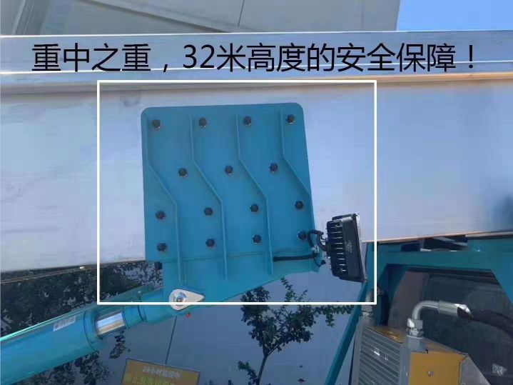 4、液壓支腿,H型液壓支腿加前液壓支腿 ,二節水平支腿跨距大,穩定性好,可同時或單獨操作,前支腿加強了車輛的穩定性