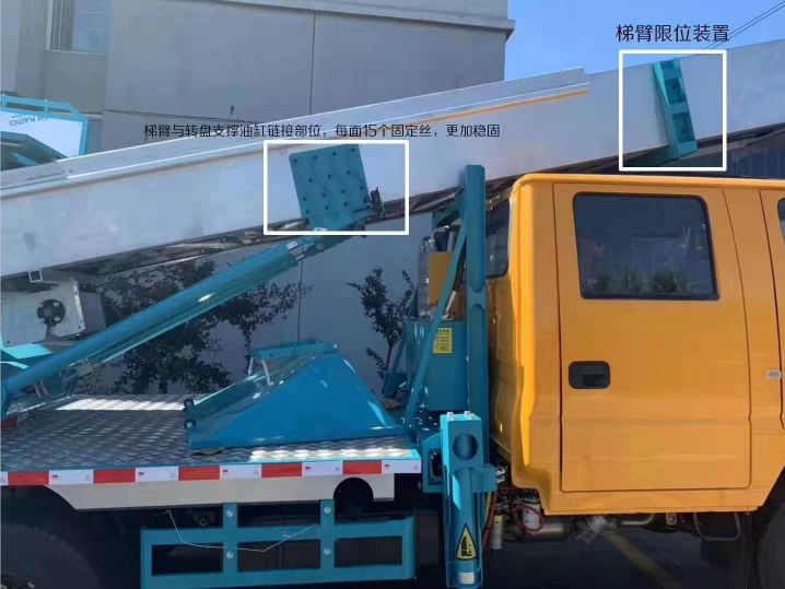 1、云梯車:人性化設計、更方便、落地斗離地面0-45公分、工作時更省力。