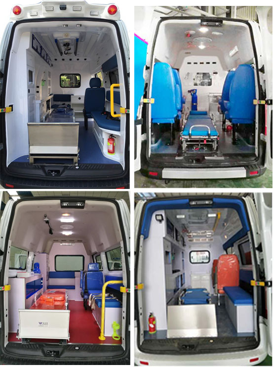 該車配備醫療器械柜,氧氣瓶,擔架,消毒燈救護專用設備。選裝左側右側以及前面報閃燈,選裝頂部換氣扇,選裝側拉門踏板,選裝前窗上部報警器時整車高(mm);2407;選裝不同風格的警燈.ABS系統控制器型號:EV5051,生產廠:博世汽車部件(蘇州)有限公司,選用輪胎:215/75R16LT,層級:8PR,10PR,12PR。