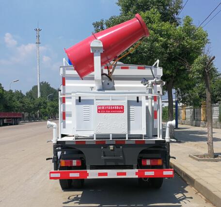 噴霧抑塵車隨車裝配大功率柴油機、三相交流同步發電機、三相異步電動機、三缸活塞泵,并安裝風機風炮,為農藥噴灑提供專一動力來源和專用設備。灑水泵可抽水排水,安裝濾網,帶消防接口,可通過消防栓進水,帶自流閥,隨車選裝20米噴藥綠化卷盤