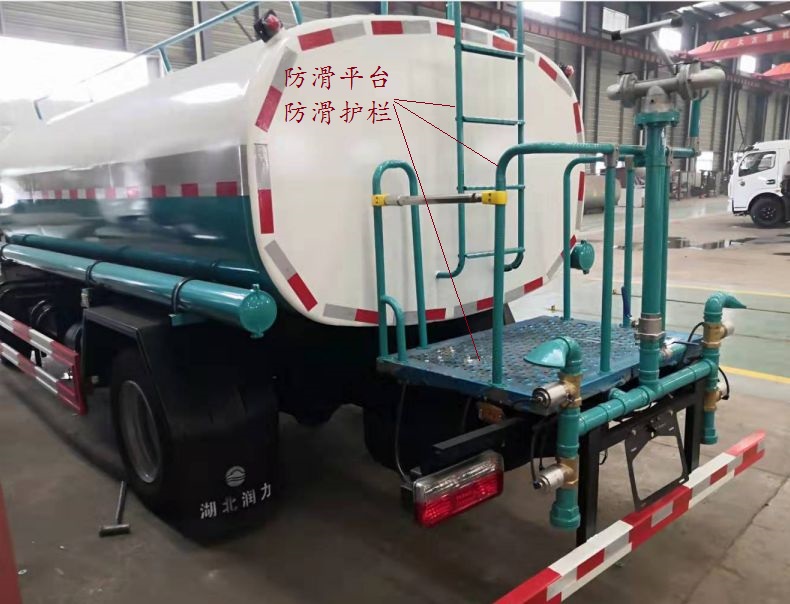 罐體及整車外形尺寸嚴(yán)格按照公告制作,裝配大功率專用灑水泵,泵可自吸自排,整車前沖、后灑、側(cè)噴、帶65消防接口,前封頭帶亮管水位計(jì),隨時(shí)了解罐體內(nèi)水量。罐體尾部帶平臺(tái)及爬梯。平臺(tái)上裝綠化灑水炮,灑水炮射程達(dá)30米左右,可360度全方位旋轉(zhuǎn),可調(diào)成直沖狀、大雨、小雨、毛毛雨。帶兩根水管及快接頭陰陽端,方便野外取水需要,最大吸程≥6.5米。罐體顏色及兩側(cè)字樣根據(jù)公告或用戶要求噴涂。貼反光標(biāo)示.