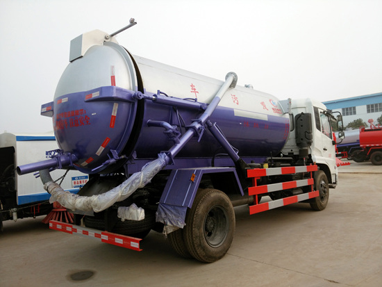 吸污車專用部分由取力器、傳動軸、真空吸污泵、壓力罐體、液壓部分,管網(wǎng)系統(tǒng)、真空壓力表、視糞窗、洗手裝置等組成,隨車配置大功率真空吸污泵和優(yōu)質(zhì)液壓系統(tǒng),罐體封頭一次壓鑄成型、罐體可后開、雙頂自卸。罐內(nèi)污物可通過后蓋直接傾倒,具有真空度高(比吸糞車的吸力更大)、噸位大、效率高、用途更廣泛的特點(diǎn)。